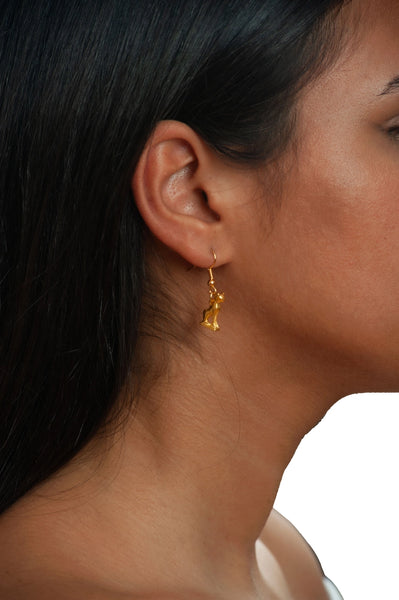 Cats were considered sacred in ancient Egypt. They represented Bastet, the cat-headed goddess of Bubastis, a city in the northeastern delta of Lower Egypt. Originally linked to the sun god Ra, Bastet came to be associated with the life preserving power of the sun, the protection of women, felicity and joy. Our cat is a reproduction of a faience (glazed earthenware) amulet. Cat amulets were commonly worn on necklaces during the 22nd and 23rd dynasties to invoke the blessing of Bastet.