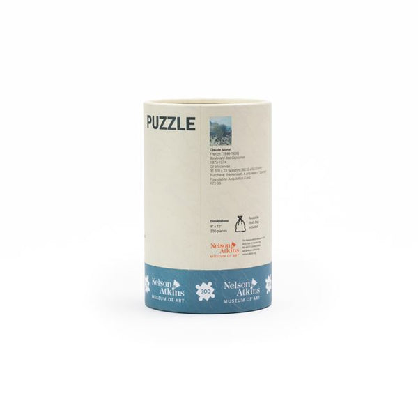 Puzzle size is 12" x 9" and comes in a 3.25” x H 5“ Cylindar gift box.