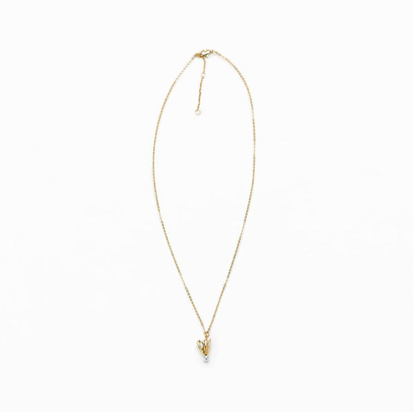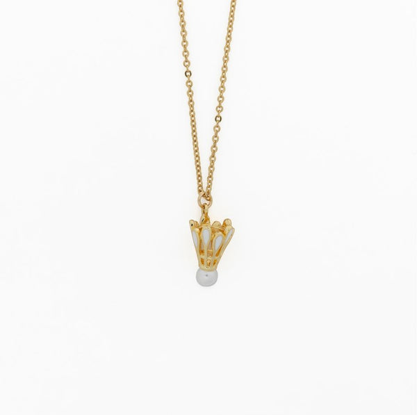 - Gold-filled chain and shuttlecock charm with faux pearl tip