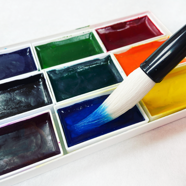 The finest quality watercolors used by Japan’s watercolor and Sumi-e painters can be found in this set of twelve color fast colors in reusable rectangular plastic containers, stored in a decorative paper box. This is the same selection as WC215 (Traditional Japanese Watercolor 12 Color Set) in a more economical set, using smaller quantities with each color in a 1″ x 1 3/4” plastic dish.
